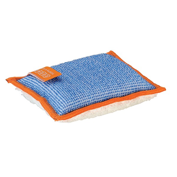 Weiße Faser für Schmutz- und Seifenränder, gestreifte Faser für Verkalkungen und starke Verschmutzungen.